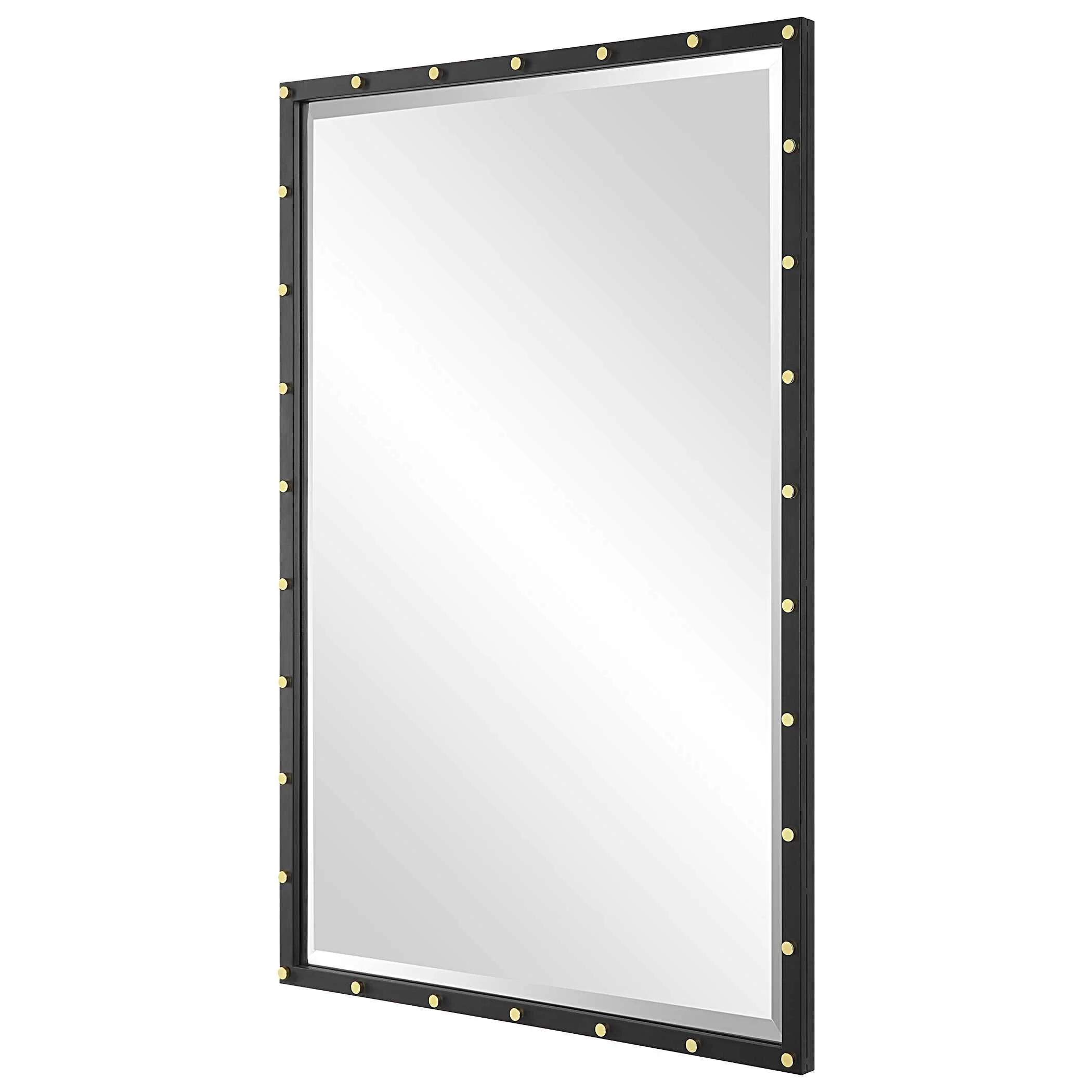 moreThis Urban Industrial Design Features An Iron Frame Finished In Matte Black Adorned With Plated Brass Smooth Screw Caps. Mirror Has A Generous 1 1/4" Bevel. May Be Hung Horizontal Or Vertical.