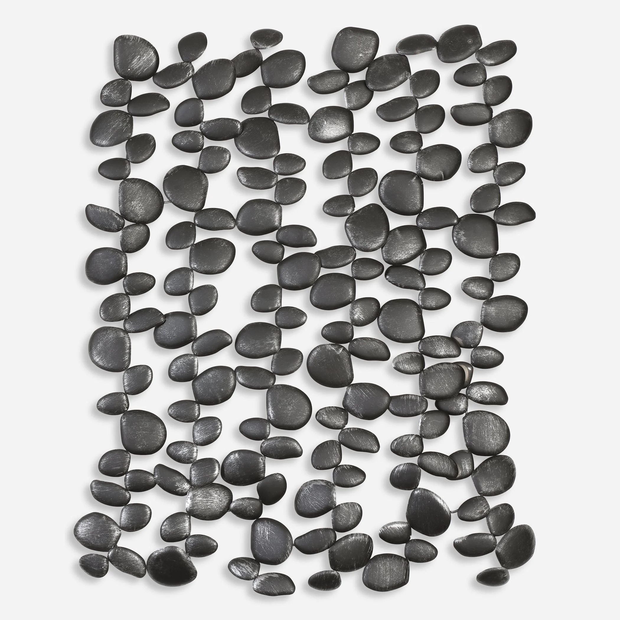 moreReminiscent Of Smooth Stone Pebbles In Rippling Water, This Wavy 3-dimensional Piece Is Crafted From Hand Forged Iron And Finished In A Charcoal Black With Silver Undertones.